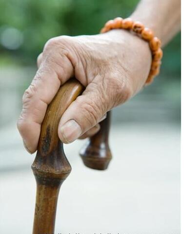 老人穿平底鞋站立,兩手自然下垂,手腕部皮膚橫紋至地面的距離就約等于拐杖的理想長度。